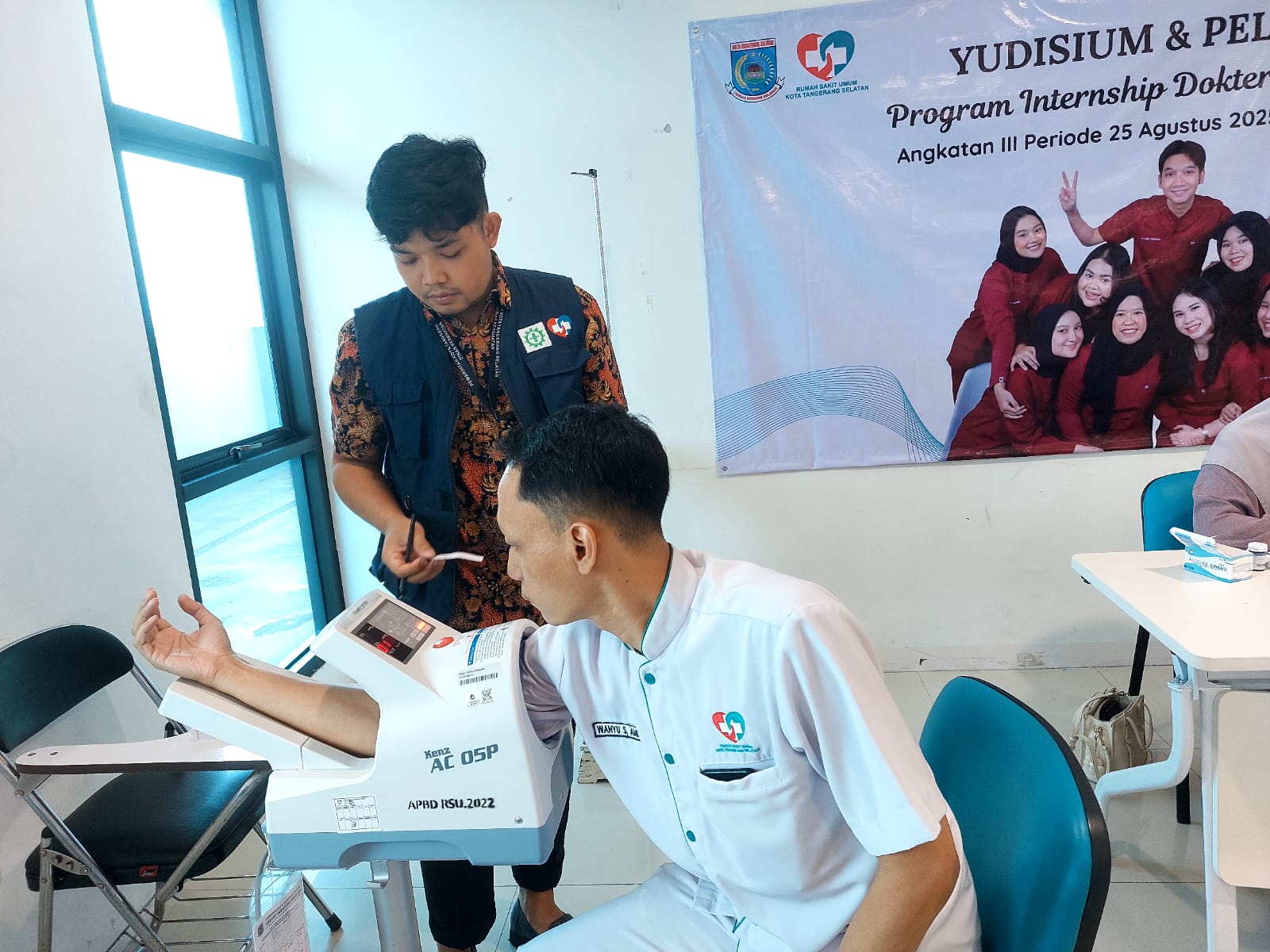 “Kegiatan hari ini adalah CKG, yaitu Cek Kesehatan Gratis, yang dilaksanakan di Rumah Sakit Umum Kota Tangerang Selatan. Kegiatan ini sudah mulai berlangsung dari tanggal 18 sampai dengan 27. Jadi keseluruhan rangkaiannya sekitar satu minggu, khusus untuk internal rumah sakit,” ujar Ronald, Kamis (26/2).