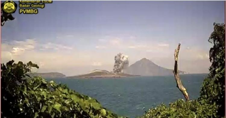 Erupsi pertama Gunung Anak Krakatau, terjadi pada pukul 05.19 WIB. Tinggi kolom abu teramati ± 3.000 m di atas puncak.