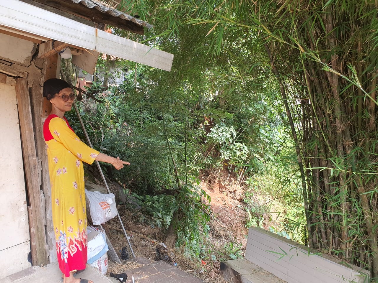 Nenek Maryani tinggal bersama 2 anak perempuan dan 3 orang cucunya. Suaminya telah tiada sejak 2008 silam. Tempat tinggalnya tak jauh dari tebing yang rentan longsor. Kontur hingga kemiringan permukaan tanah di sana bisa menyebabkan tanah bergerak manakala ada tekanan air hujan yang cukup deras.