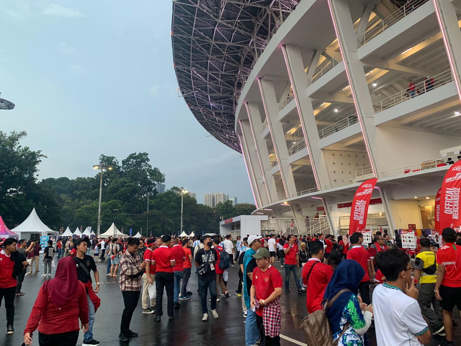 JAKARTA, Penonton mulai memadati kawasan Stadion Utama Gelora Bung Karno, Jakarta, untuk menyaksikan laga Timnas kontra Argentina.