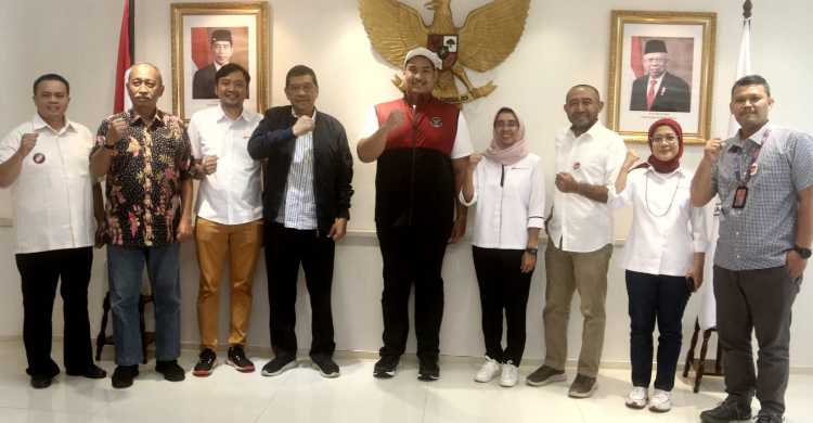 Kedatangan awak redaksi Rakyat Merdeka (Tangsel Pos Grup) disambut hangat oleh Menpora Dito Ariotedjo.