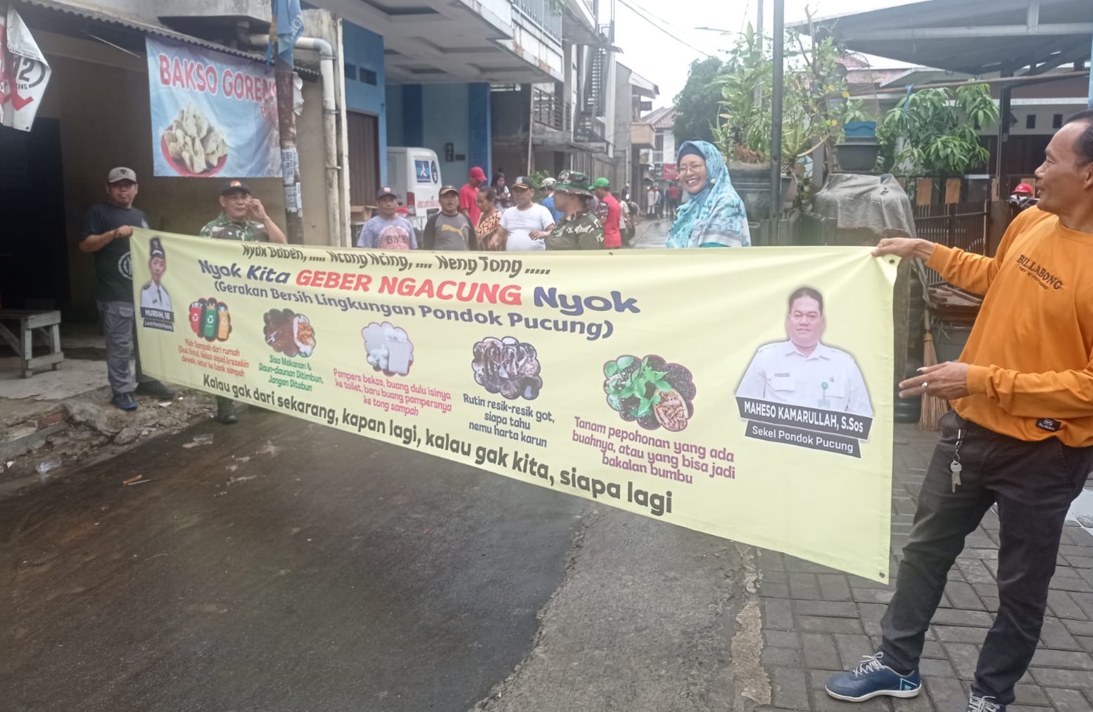 Kerja bakti ini untuk mewujudkan Pondok Pucung BERANI yakni Bersih Edukatif Ramah Aman Nyaman dan Indah.