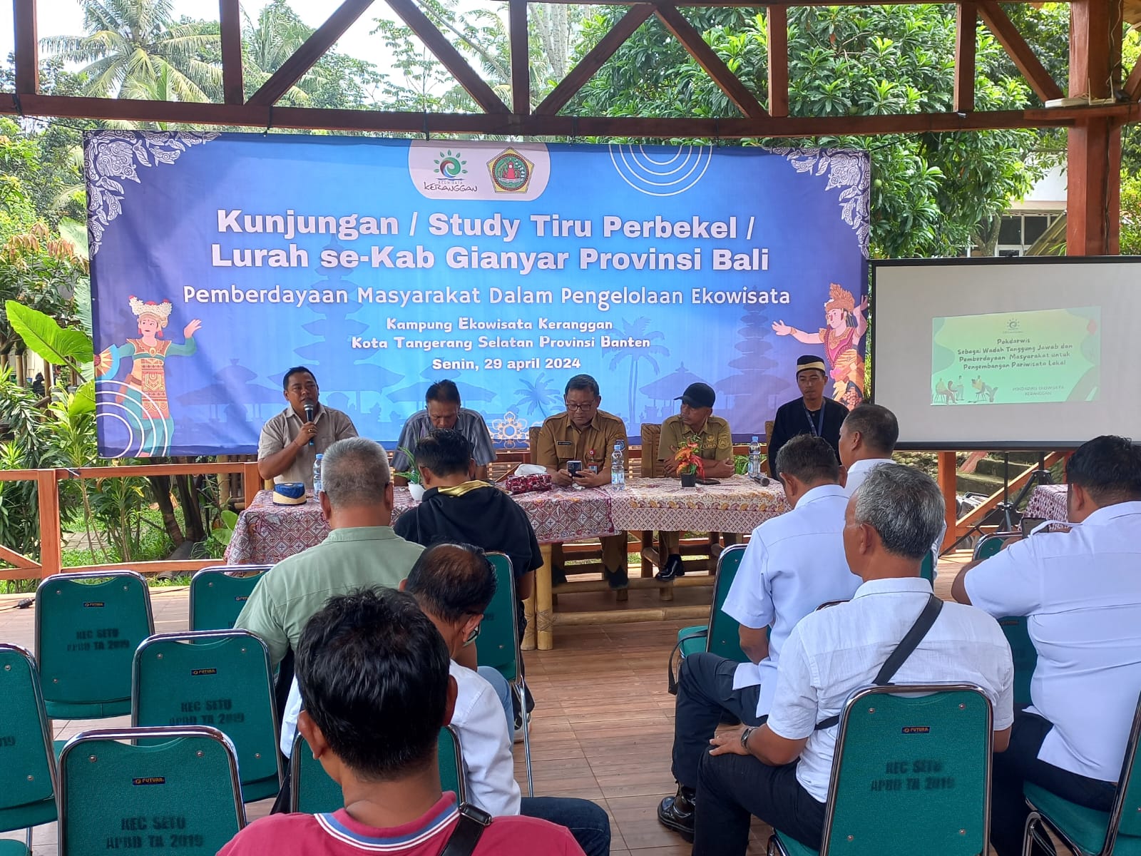 SETU-Sebanyak 80 orang yang terdiri dari camat, perbekel, dan lurah seKabupaten Gianyar, Provinsi Bali berkunjung ke Kampung Ekowisata Keranggan, Kecamatan Setu, Kota Tangerang Selatan (Tangsel), Senin (29/4).