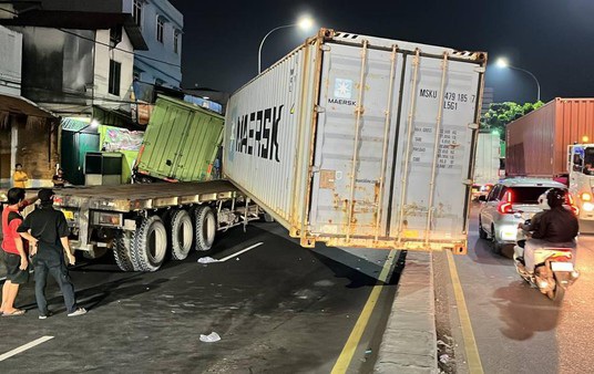 “Karena pengemudi truk trailer sedang dalam keadaan mengantuk, sehingga oleng lalu terjadi benturan antara bagian samping sebelah kiri peti kemas truk trailer dengan bagian belakang kanan kendaraan truk boks yang sedang berhenti di sisi kiri,” kata Suwandhi.