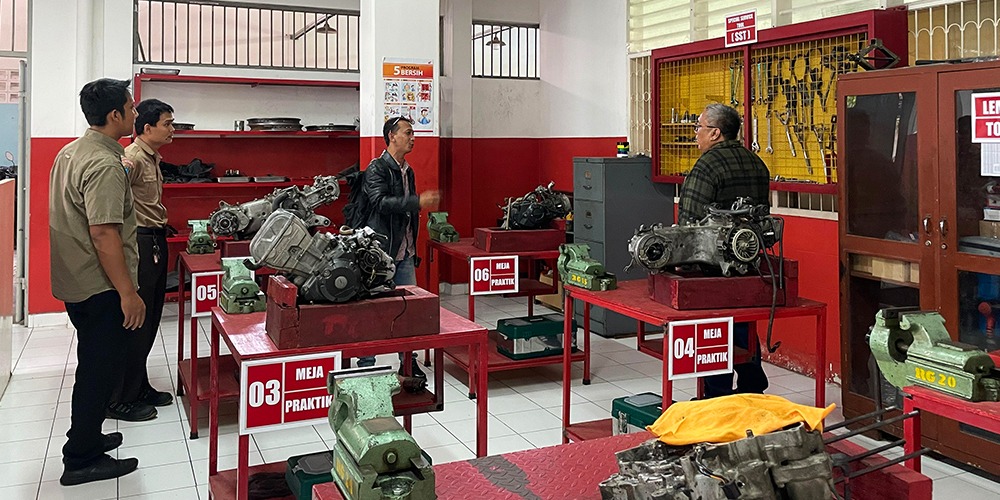 JAKARTA-Dalam upaya meningkatkan kualitas pendidikan vokasi di bidang Teknik Sepeda Motor (TSM), PT Wahana Makmur Sejati (WMS) didukung PT Astra Honda Motor (AHM) lakukan kunjungan ke SMK mitra binaan wilayah Jakarta Barat dan Jakarta Pusat.