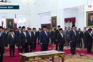 Sebanyak 53 menteri/pejabat setingkat menteri dan 56 wakil menteri resmi dilantik Presiden Prabowo Subianto, di Istana Negara, Jakarta, Senin (21/10/2024). Akhir pekan nanti, mereka akan menerima pembekalan dari Prabowo di Akmil, di Lembah Tidar. Pembekalan dilakukan selama tiga hari, 25-27 Oktober 2024.