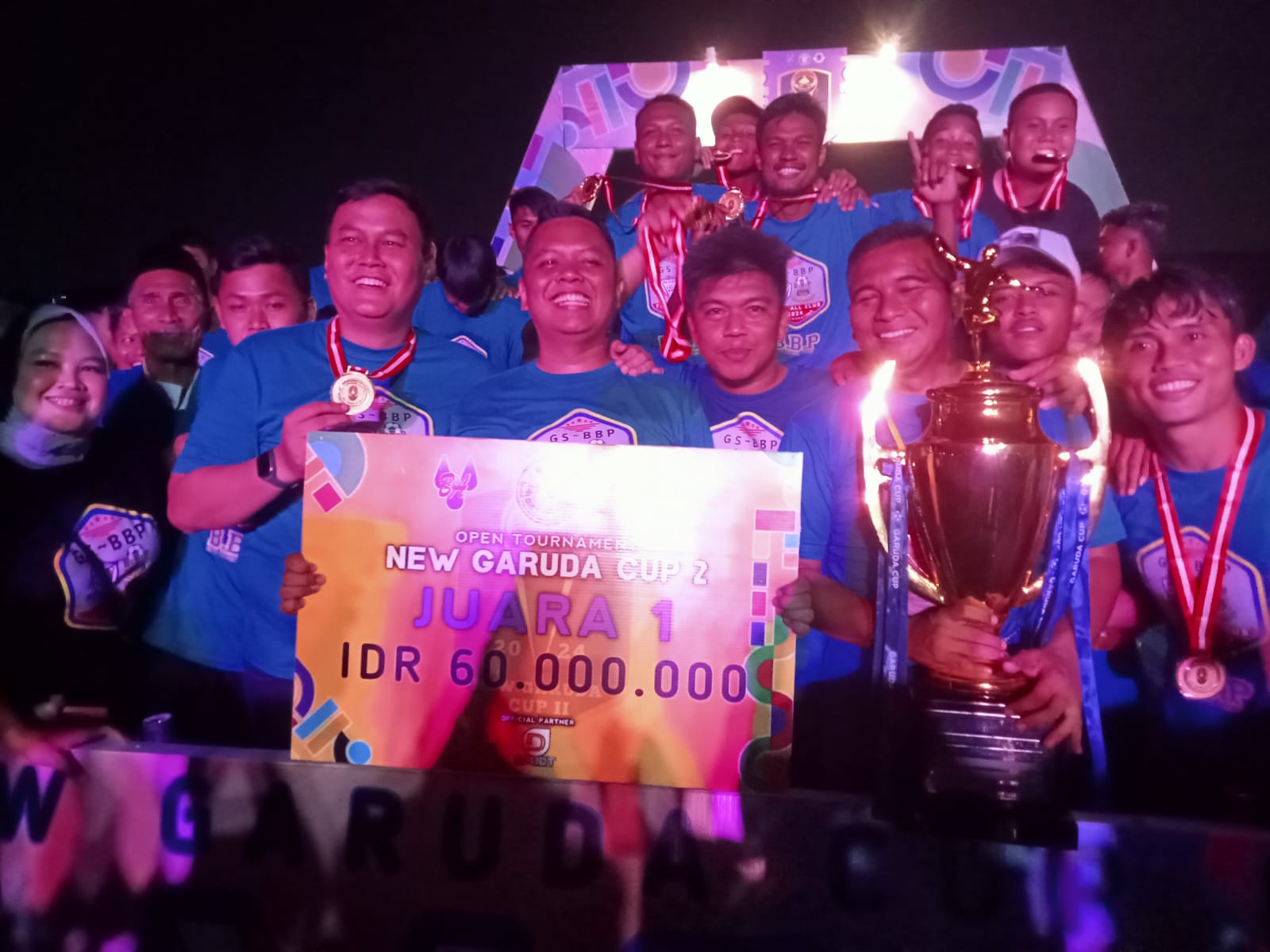 LARANGAN-Kesebelasan Golok Setan BBP menobatkan diri sebagai juara baru di New Garuda Cup ke-2 Tahun 2024. Mahkota diraih tim besutan H Dobo dan Bayu Endarianto itu setelah mengalahkan Joglo 02 dengan skor 2-1 pada laga final, Minggu (27/10/2024) sore.