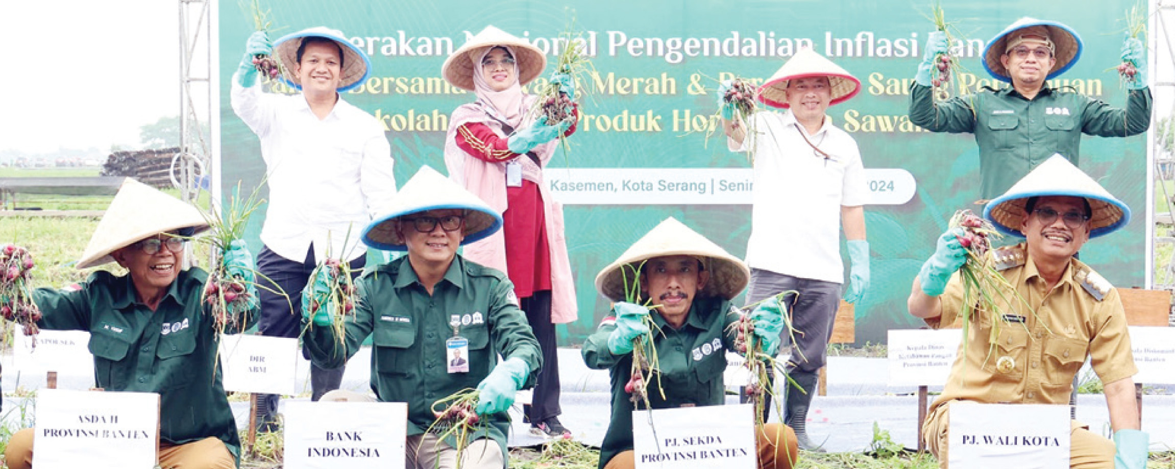 Hal itu diungkapkan Penjabat (Pj) Sekda Provinsi Banten Usman Asshiddiqi Qohara usai Panen Raya Bawang Merah dan Peresmian Saung Pertemuan Sekolah Lapangan Produk Hortikultura di Kelurahan Sawah Luhur, Kota Serang, Senin (12/24) bersama jajaran Bank Indonesia Kantor Perwakilan Provinsi Banten.