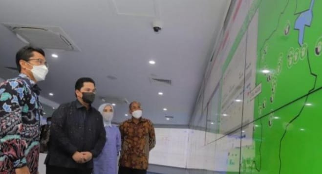 Erick meninjau PIEDCC di Gedung Grha Pertamina, Jakarta Pusat didampingi oleh Direktur Utama Pertamina Nicke Widyawati, Rabu (7/9). Erick langsung memantau layar besar yang menyajikan kondisi SPBU Pertamina di berbagai wilayah Indonesia dan meninjau langsung data ketersediaan (stok) BBM di seluruh Indonesia yang dijelaskan oleh SVP Integrated Enterprise Data and Command Center Ignatius Sigit Pratopo.