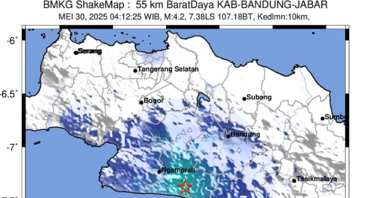JAWA BARAT - Gempa bermagnitudo 4,2 mengguncang wilayah Kabupaten Bandung, Jawa Barat, Kamis (30/5/2025) pukul 04.12.35 WIB.