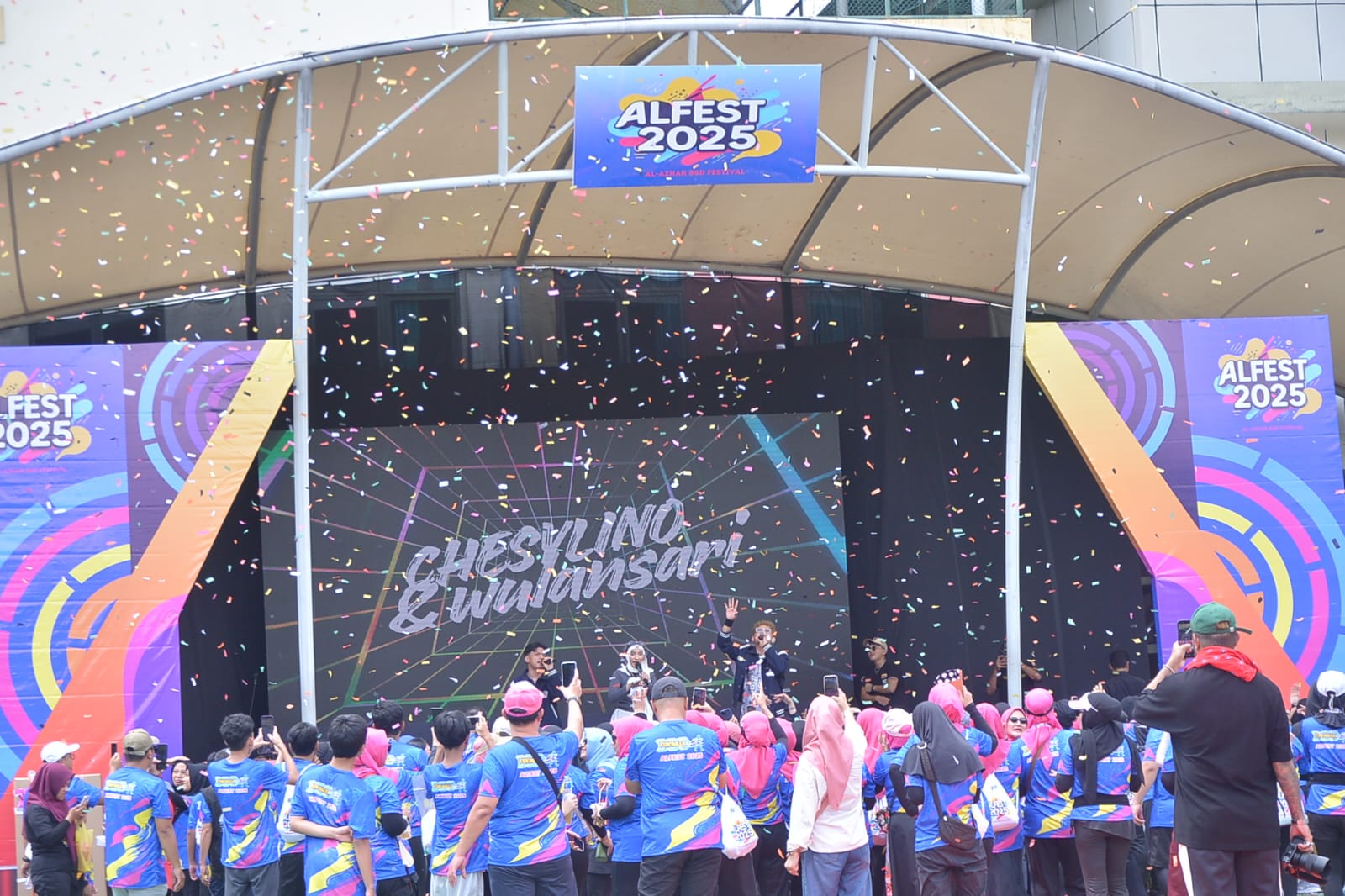 Kemasan acara semakin semarak dengan pembagian lebih dari 120 doorprize serta Grand Prize satu paket umrah. Hiburan dari bintang tamu Timur Tabola Bale Chesylino dan Whulan Sari turut menambah kemeriahan suasana Funwalk ALFEST 2025.