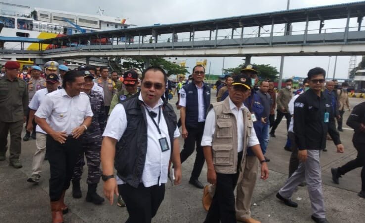 CILEGON - Menteri Kordinator (Menko) Pembangunan Manusia dan Kebudayaan (PMK) RI, Muhadjir Effendy, berkunjung ke Pelabuhan Merak, Minggu (1/1/2023). Untuk memastikan kondisi Pelabuhan masih dalam kondisi siap, menjelang arus balik yang diprediksi akan tiba pada esok hari atau lusa.
