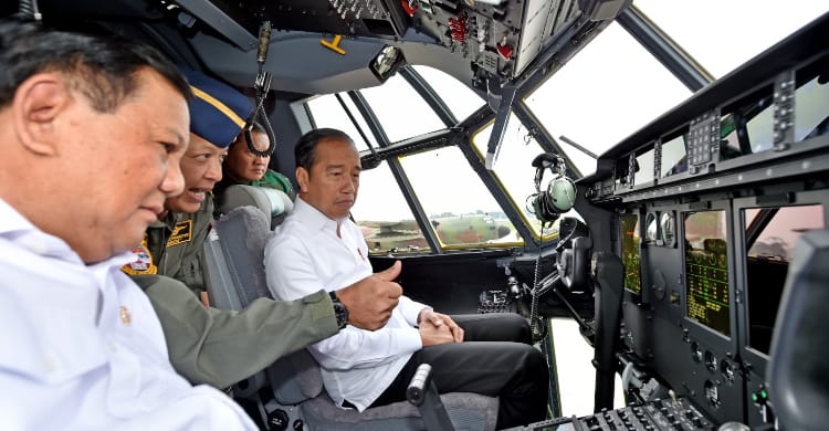 Presiden Jokowi yang hadir di acara tersebut, sempat menjajal masuk ruang kokpit pesawat. Di dalam ruang kemudi itulah, Jokowi duduk di kursi pilot, sementara Menteri Pertahanan Prabowo Subianto yang ikut mendampingi duduk di kursi co-pilot.
