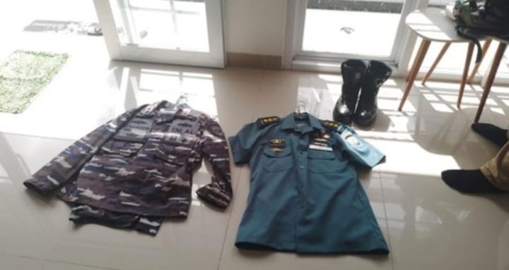 Sejumlah barang bukti berupa atribut TNI AL juga berhasil diamankan, ia mengaku membelinya dari sejumlah aplikasi jual beli.