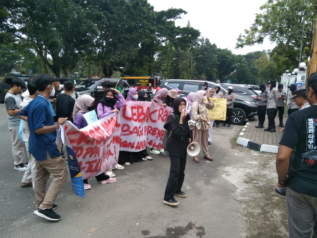 Aksi unjuk rasa tersebut digelar sebagai bentuk kritik terhadap pemerintah daerah karena masih tingginya kasus kekerasan terhadap perempuan dan anak di Kabupaten Lebak.